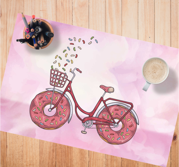 Sie suchen nach einer einfachen Möglichkeit, Ihre Tische einzigartig und unvergesslich zu machen? Dann schauen Sie sich dieses Tischset mit Donut-Rädern an! Das süße Fahrrad-Design auf einem hellrosa Hintergrund wird unglaublich aussehen und Ihre Oberflächen vor Kratzern und Schäden schützen.