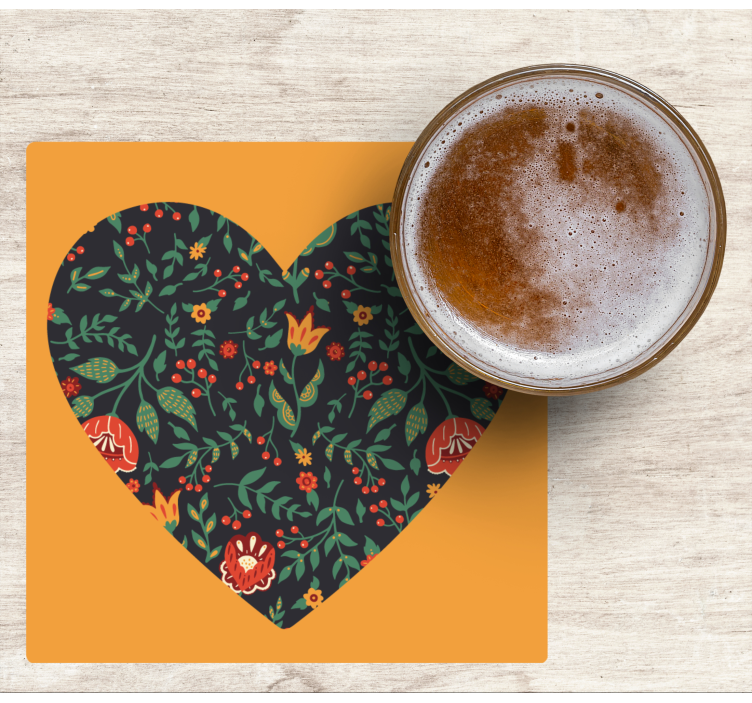 Dieses Design hat einen orangen Hintergrund mit einem Herz-Motiv mit Pflanzen. Der Herz-mit-Pflanzen-Untersetzer für Getränke ist einzigartig und stilvoll.