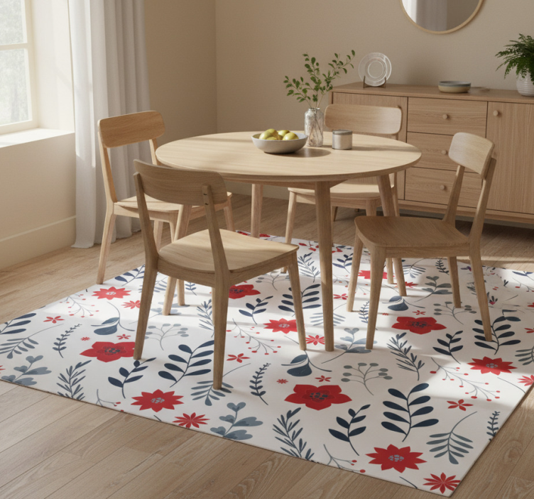 Vinyl teppich blumen in weiß und rot