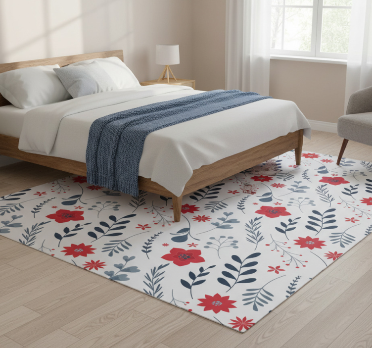 Vinyl teppich blumen rot und weißes muster