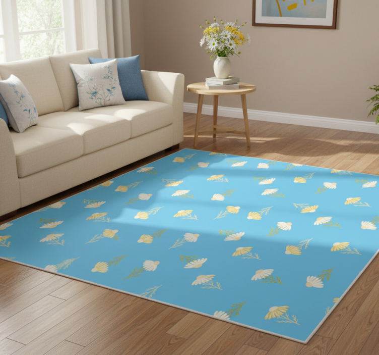 Vinyl teppich blumen mit gänseblümchen muster blau