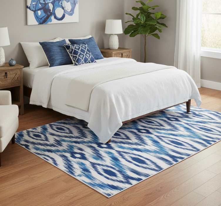 Der Vinyl Teppich ethnisch mit blauem ikat-muster ist die perfekte Wahl, um Ihre Räume stilvoll zu gestalten. Seine einzigartigen Muster und Farben machen ihn zu einem Blickfang in jedem Raum und verleihen Ihrer Einrichtung einen besonderen Charme. Zudem ist er kostengünstig und bietet eine hervorragende Möglichkeit, Ihrem Zuhause einen individuellen Touch zu verleihen. Lassen Sie sich inspirieren und bringen Sie frischen Wind in Ihre Wohnräume!