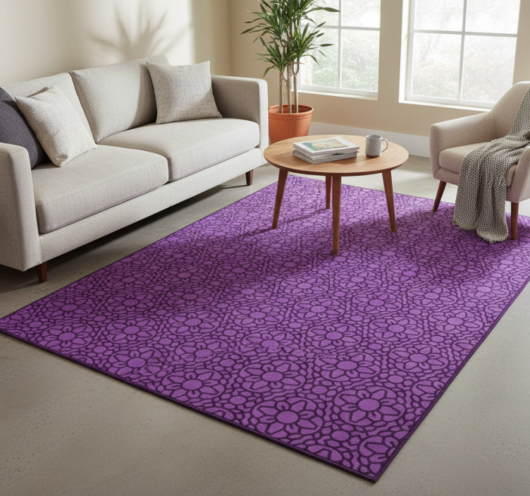 Referenz: R21610Entdecken Sie den Vinyl Teppich geometrisch lila kreisblumen, der mit seinem einzigartigen Design aus geometrischen Formen und lila Kreisblumen begeistert. Die harmonische Farbkombination bringt Frische in jeden Raum und verleiht Ihrem Zuhause einen modernen Touch. Dieser Teppich ist nicht nur optisch ansprechend, sondern bietet auch praktische Vorteile, die ihn zur idealen Wahl für Ihre Wohnräume machen!