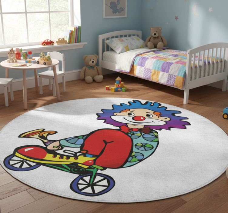 Vinyl teppich kinderzimmer clown auf dem fahrrad