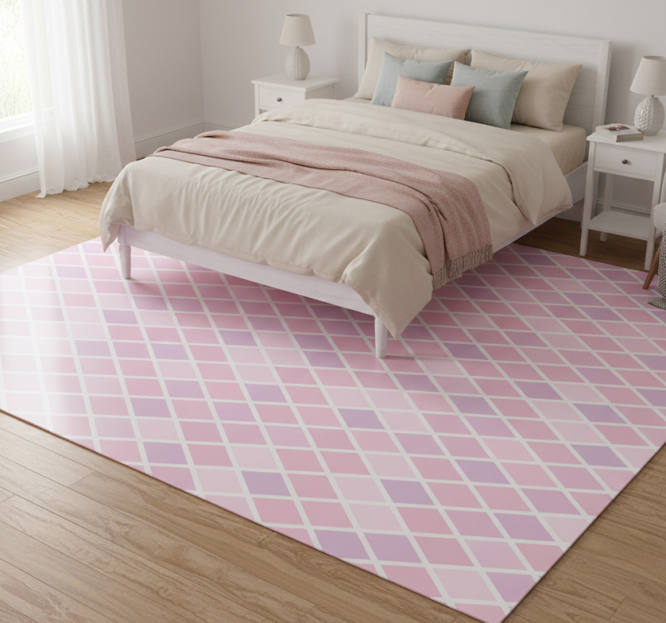 Vinyl teppich schlafzimmer im design pink und weiß rauten