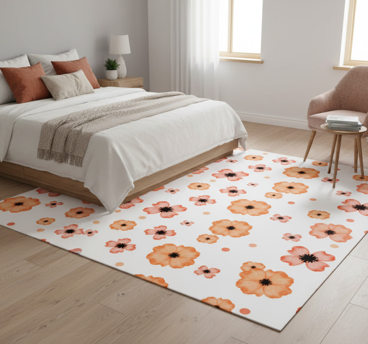 Vinyl teppich schlafzimmer im orange-pinken aquarellmuster