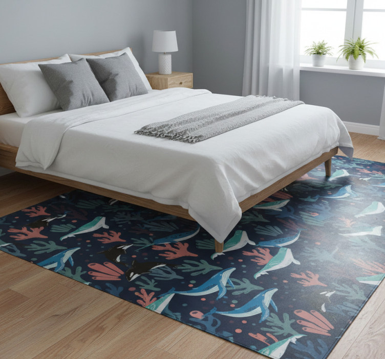 Vinyl teppich schlafzimmer mit bunten meeresbewohnern