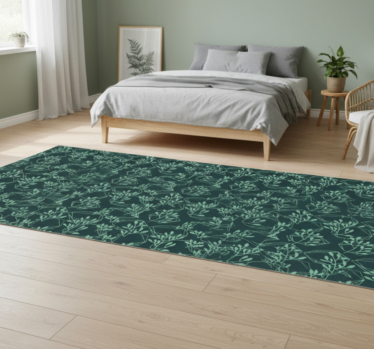 Vinyl teppich schlafzimmer mit grünen vintage-pflanzen