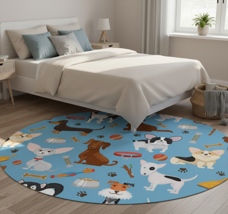 Vinyl teppich schlafzimmer mit hunden muster blau