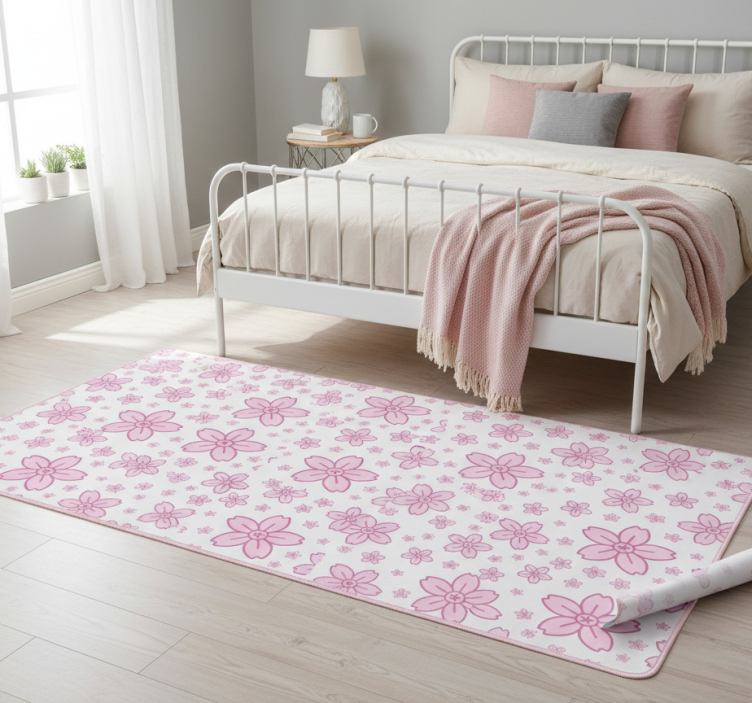 Vinyl teppich schlafzimmer mit pinken kleinen blumen