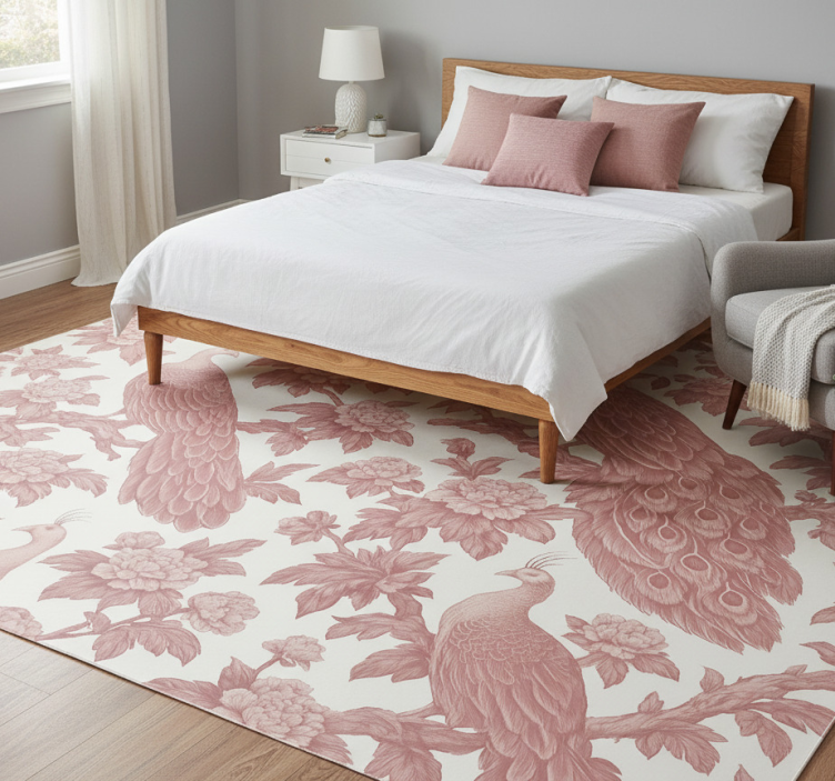 Vinyl teppich schlafzimmer mit rosa pfauenmuster