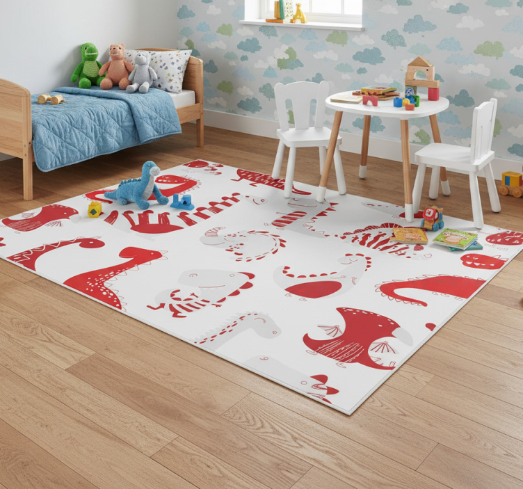 Vinyl teppich schlafzimmer mit roten dinosaurier skizzen