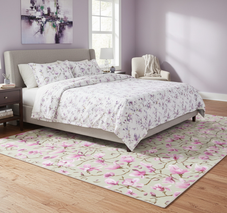 Der Vinyl Teppich Schlafzimmer vinyl teppich schlafzimmer mit schönen lila magnolien ist die perfekte Wahl für alle, die einen Hauch von Farbe und Stil in ihr Zuhause bringen möchten. Seine lebendige Farbpalette und das elegante Design machen ihn zu einem echten Blickfang in jedem Raum. Er fügt sich nahtlos in verschiedene Einrichtungsstile ein und verleiht Ihrem Schlafzimmer eine einladende und gemütliche Atmosphäre. Dieser Teppich ist mehr als nur ein dekoratives Element – er ist ein Statement!