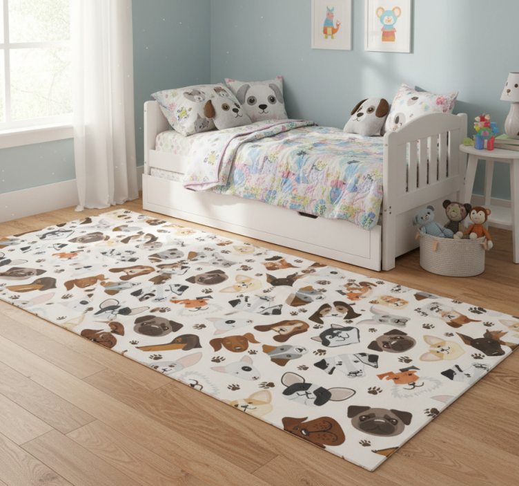 Vinyl teppich schlafzimmer mit süßem welpenmuster