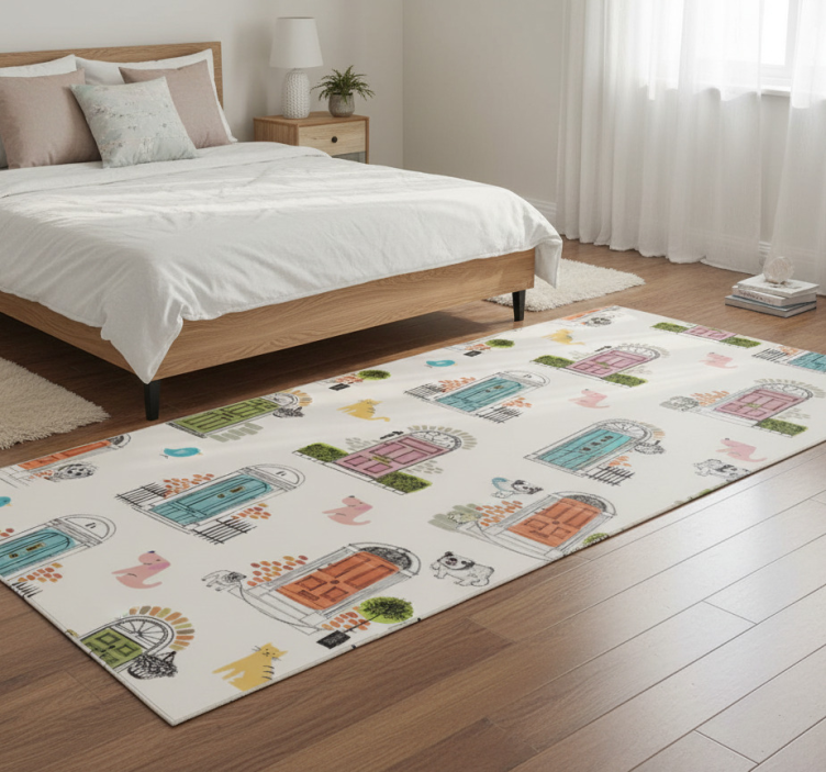 Vinyl teppich schlafzimmer mit tier- und gebäudesymbolen