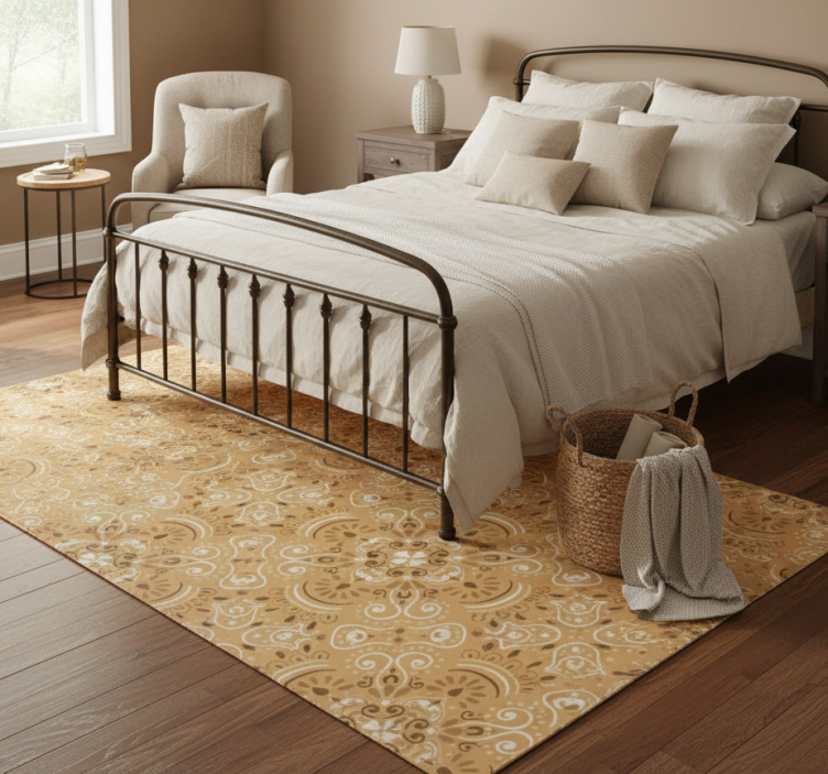 Vinyl teppich schlafzimmer mit vintage beigem ornamente