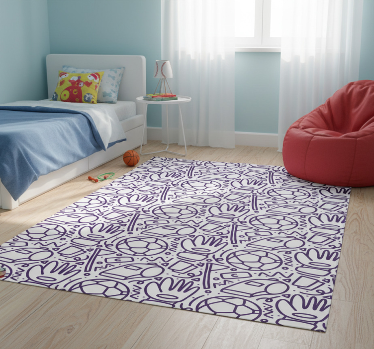 Der Vinyl Teppich Schlafzimmer Sport Doodle Design ist die perfekte Wahl für alle, die ihrem Raum eine fröhliche und kreative Ausstrahlung verleihen möchten. Mit seinem einzigartigen Design und der einfachen Pflege eignet er sich hervorragend, um eine gemütliche und einladende Atmosphäre zu schaffen. Dieser Teppich schützt Ihren Boden und sorgt für Wärme und Komfort, während er gleichzeitig ein echter Blickfang ist. Lassen Sie sich von der Vielseitigkeit und dem modernen Look begeistern!