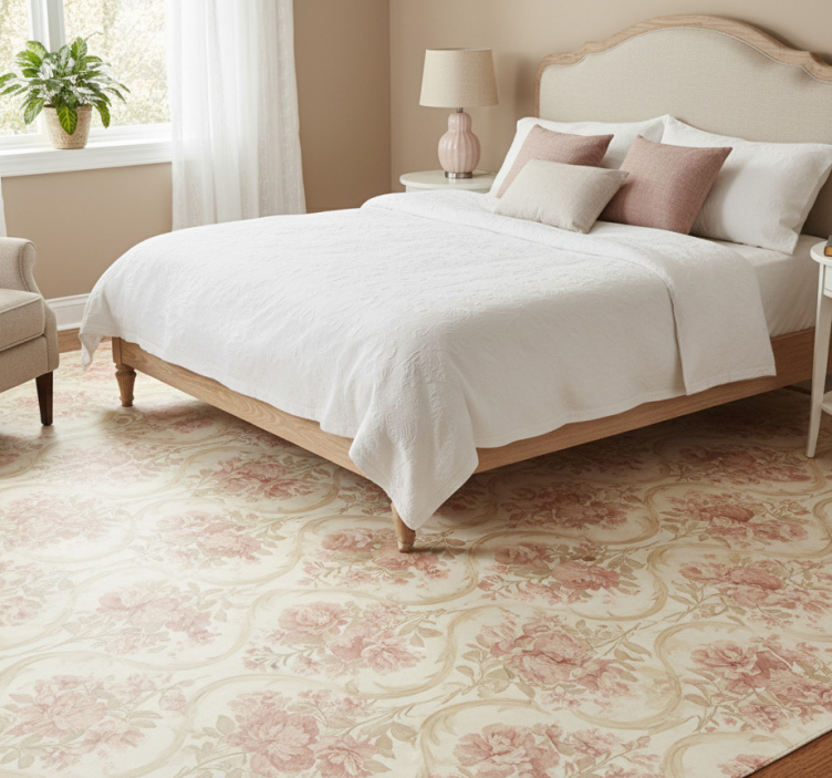 Referenz: R23980Dieser Vinyl Teppich Schlafzimmer vintage blumen design bringt einen Hauch von nostalgischem Charme in Ihr Zuhause. Mit seinem kunstvollen Blumenmuster und den sanften Farben wird dieser Teppich zum Blickfang in jedem Raum. Die Kombination aus Vintage-Design und moderner Funktionalität macht ihn nicht nur optisch ansprechend, sondern auch äußerst praktisch. Er ist leicht zu reinigen, rutschfest, schützt Ihren Boden und ist kratzfest. Sie benötigen keine aufwendige Installation, um diesen Teppich in Ihrem Schlafzimmer zu genießen!