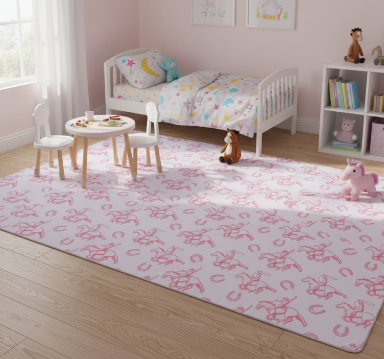 Vinyl teppich tiere mit pinkem cowboypferd-muster
