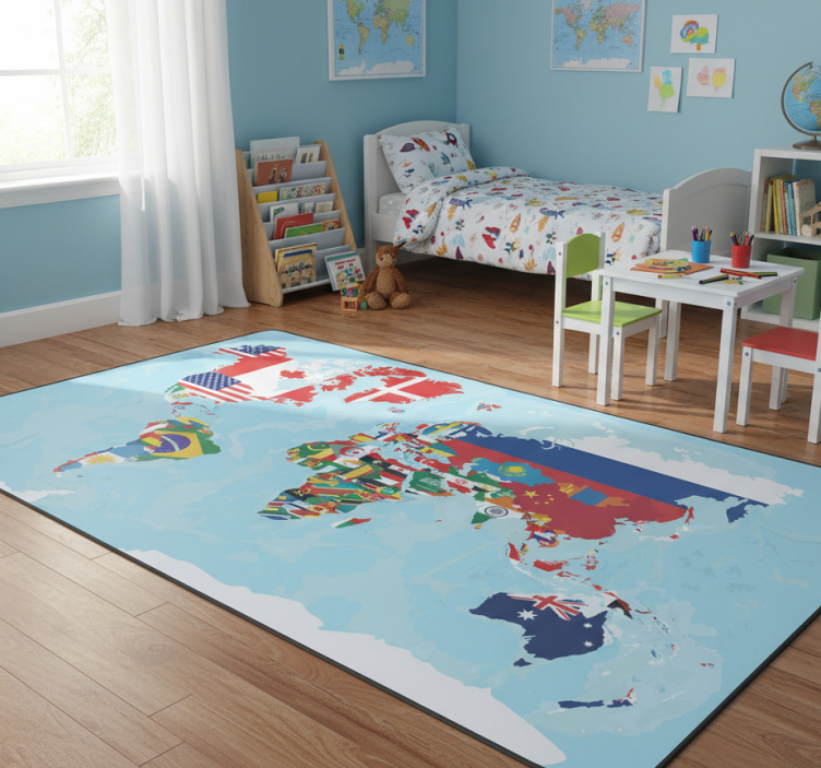 Referenz: R23165Entdecken Sie die faszinierende Vinyl Teppich Weltkarte mit Flaggen Motiven, die nicht nur Ihre Räume verschönert, sondern auch als kreatives Element dient. Dieses außergewöhnliche Design vereint eine stilvolle Weltkarte mit den Flaggen verschiedener Länder, die den Teppich zu einem echten Hingucker machen und gleichzeitig eine inspirierende Atmosphäre schaffen. Die lebendigen Farben und die detailreiche Darstellung bringen Ihre Wände zum Leben und laden dazu ein, die Welt zu erkunden!