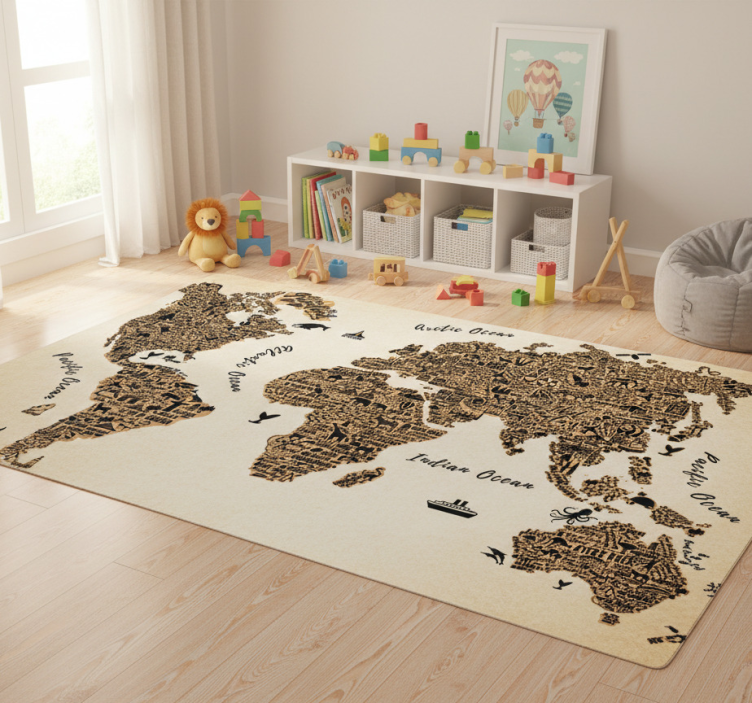 Vinyl teppich weltkarte mit textprofilen